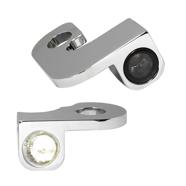 *This item is subject to an additional 4 days transit time. When you include additional items in your order, these can be shipped separately in advance, you just have to leave a note in “comments” to this effect. In this case there will be two different orders with separate freight charges.* ECE approved front turn signals with a white position light. CNC machined billet aluminum housing. These are the smallest, brightest and most powerful LED turn signals HeinzBikes has made to date. Virtually invisible on the handlebar, with a ‘smaller than a 1 cent coin’ lens. Installs below the handlebar for an inconspicuous front turn signal set-up. Note: Only CAN-bus models like 11-up Softail, 12-17 Dyna, 14-up Touring, 14-22 XL Sportster models can be directly installed. Earlier models, without CAN-bus type wiring, will require a load equalizer to correct the turn signal flash rate when switching from regular incandescent bulbs to LED. A HeinzBikes load equalizer is available is 706793.