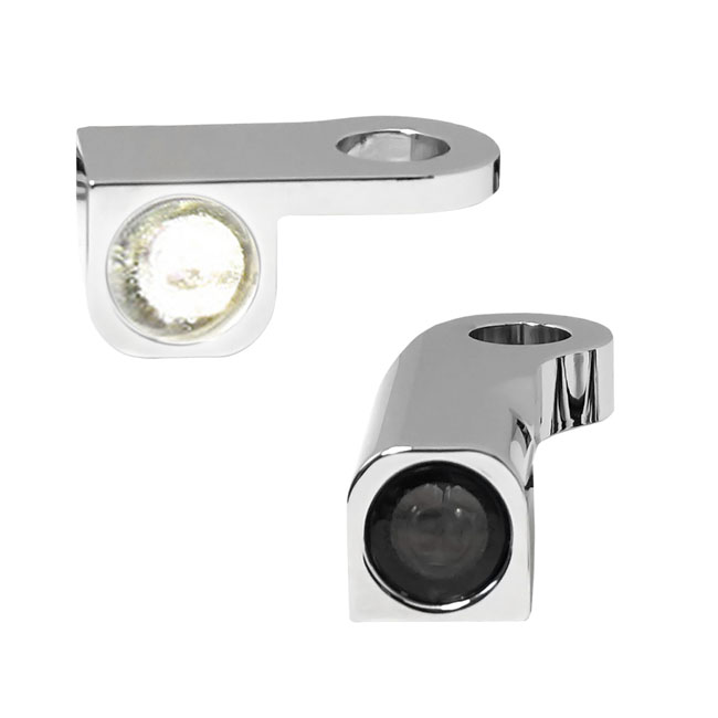 *This item is subject to an additional 4 days transit time. When you include additional items in your order, these can be shipped separately in advance, you just have to leave a note in “comments” to this effect. In this case there will be two different orders with separate freight charges.* ECE approved front turn signals with a white position light. CNC machined billet aluminum housing. These are the smallest, brightest and most powerful LED turn signals HeinzBikes has made to date. Virtually invisible on the handlebar, with a ‘smaller than a 1 cent coin’ lens. Installs below the handlebar for an inconspicuous front turn signal set-up. Note: Only CAN-bus models like 11-up Softail, 12-17 Dyna, 14-up Touring, 14-22 XL Sportster models can be directly installed. Earlier models, without CAN-bus type wiring, will require a load equalizer to correct the turn signal flash rate when switching from regular incandescent bulbs to LED. A HeinzBikes load equalizer is available is 706793.