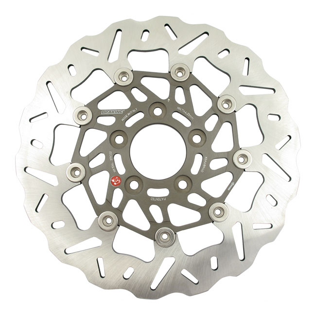 Floating Wave brake rotor with approval. Dimensions 11.5″ / 292mm OD, 56mm ID, 5/16″ counterbored mounting holes.Note: Check your local MCS dealer or the MCS sales department for exact type of approval and validity on bike model and years on the test report.