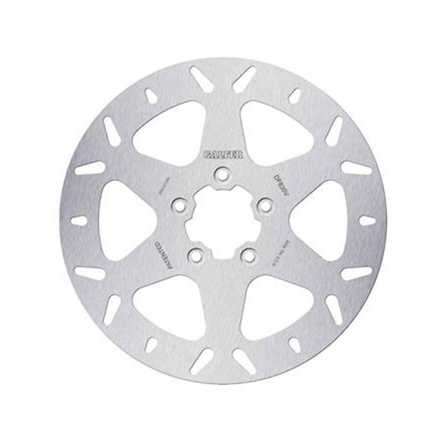 300mm (11.8″) OD, 5mm thick, 56.3mm ID, 8mm (5/16″) counterbored mount holes, 3.25″ BCD. Mount style B. Fits OEM or accessory cast & laced wheels with 3.25″ bolt circle mount holes. Replacement reference 41500022 (left only) & 41500068 (right only), 41500172. Note: All Galfer brake rotor designs are symmetrical. This allows left or right side installation without optical issues. Galfer round discs are the most classic in terms of their appearance, they are the perfect replacement to maintain the original aesthetics, and they are characterized by excellent corrosion resistance. They are made of high-carbon stainless steel, and in the case of the floating ones, the core is stainless steel (AISI 420).