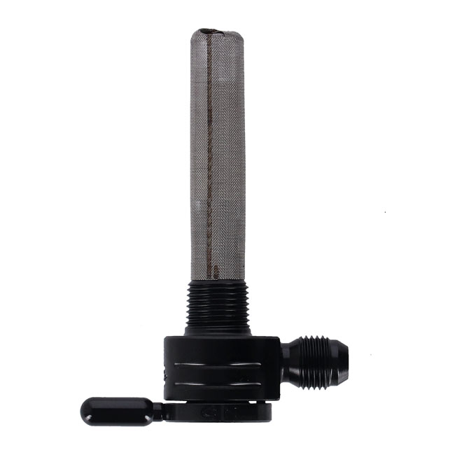 Straight outlet with 6-AN fuel fitting. Constructed from 360 brass with stainless steel ball bearings to eliminate rough, sticky or even frozen valve action. Between on, reserve and off. A special, easy to feel, detent will keep the fuel selector from accidental shifting from motor vibrations. Large 180 degree between on and reserve position for safety. O-ring seating will secure the fuel valve from leaking. Flowrate approx. 112 oz (3175 gram) per minute. Comes with a 5/16″ fuel hose connection.