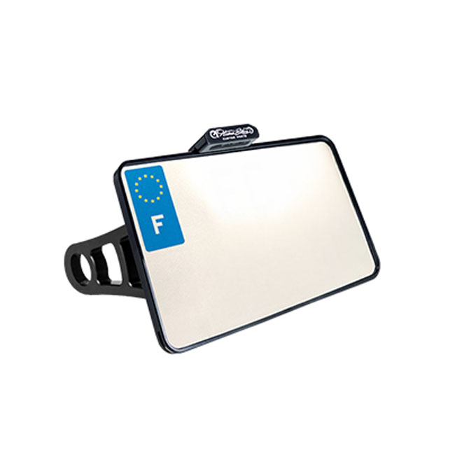 For France 210 x 130mm. CNC precision machined aluminum construction. With EC approved LED license plate illumination. The HeinzBikes SLIPP-INN ‘Screwless’ license plate mounting technology allows you to just simply slide the license plate into the holder, without requiring bolts or glue to keep it in place. Sold as kit, complete with all required installation hardware to get the install-job done. Note: With approval. Check your local MCS dealer or the MCS sales department for exact type of approval and validity on bike model and years on the test report. – Integrated LED license plate light in a slim aluminum housing – Slip-Inn license plate mount – Strong mount arm with ANTI-TWIST locking mechanism- Guaranteed anti-twist protection on the swingarm – Invisible cable routing on the inside – Mounts with 3 different width options – Complete with installation hardware – CNC machined aluminum