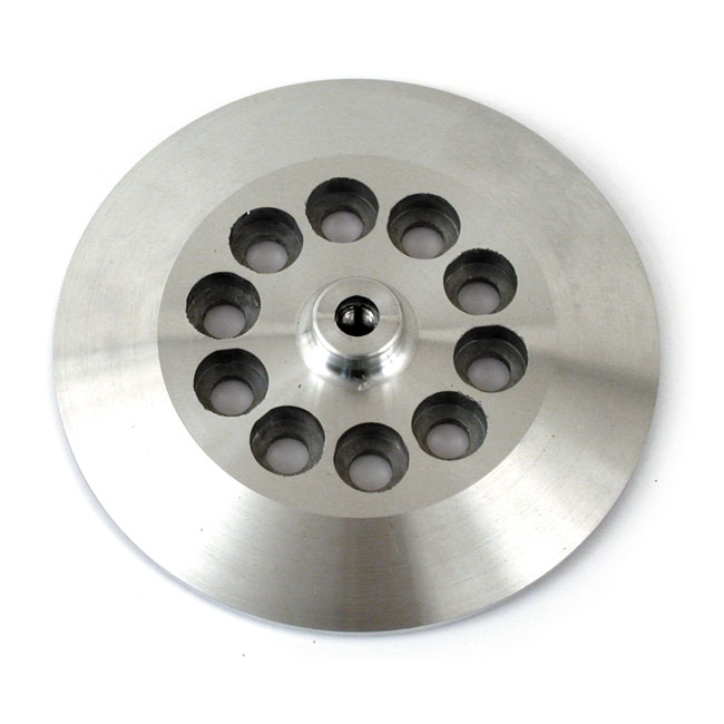 Aluminum. Polished. Replaces the wobbly low cost & non-flat original steel release disc. Provides a flat & rigid structure for evenly distributed pressure, improving clutch control. Adds great visuals in open belt drive applications. Custom replacement for the OEM style steel 37871-41 release disc.