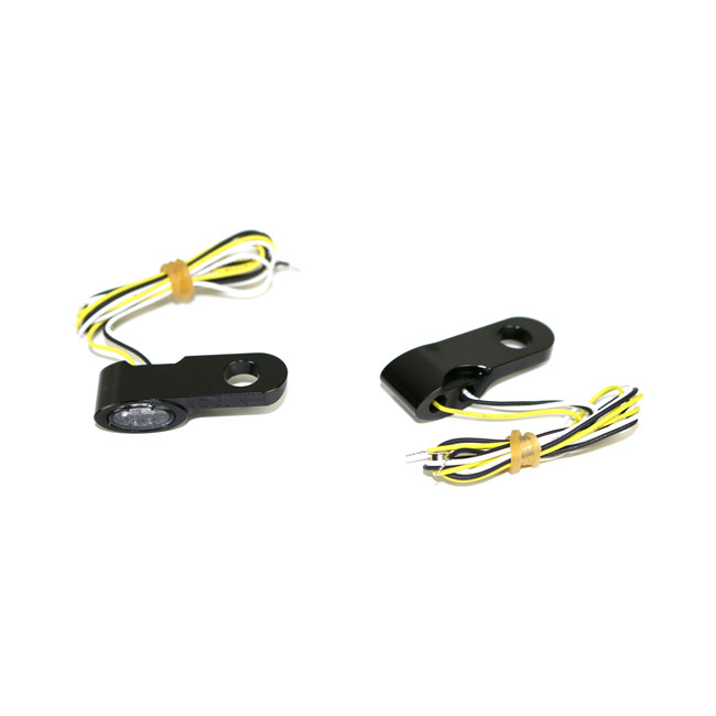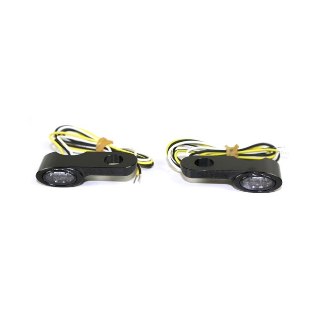 ‘- Front use – With DLR (Day Light Driving light) – SMD-LED technique – EC approved – tinted lens – Installs under mirror screw on handlebar Small precision CNC machined aluminum turn signals with a one-piece housing. SMD-LED technique assures astounding bright lights combined with the tinted lens. EC approved.
