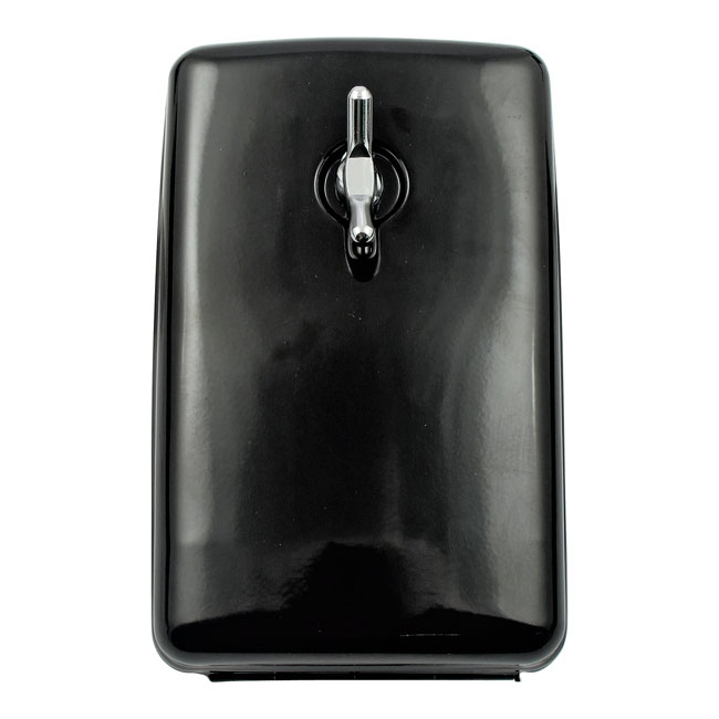 Black. Reproduction tool box as used on 1935-1939 H-D models. Complete as shown. Approx. dimensions 21.5cm x 13.5cm x 7.5cm. OEM replacement reference 3452-39