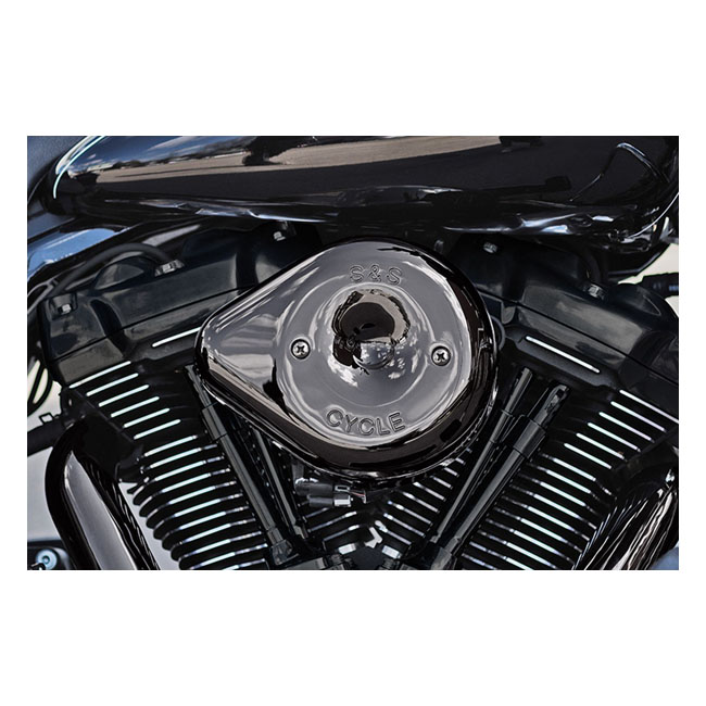 Kit comes with a standard size classic S&S teardrop cover, in a Lava Chrome (black chrome) finish that leverages the mirror finish of traditional chromium and gives it a smoky radiance producing a unique dark look. Includes a High-Flow filter element and an air directional stinger cone to guide the flow of air as smoothly as possible into the engine. Note: This filter can optionally be be used with the stock air cleaner cover, for a true stealth mode, but 558651 adapter is required when installing the OEM air cleaner cover.