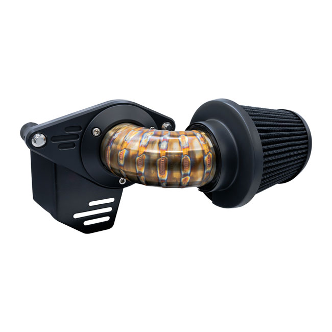 Stainless steel with a ‘works’ finish elbow. The Vance & Hines VO2 Falcon air cleaner delivers. Improved engine performance with that all important touch of class and style. With large billet aluminum inlet backing plate and venturi entrance for smooth air flow. The 90° slant nose oversize filter ensures better leg room and a higher flow of air into the engine for a bolt-on increase in power and torque. With a winged mounting base and integrated breather assembly give it a clean and streamlined hot rod look. – The high flow filter element is constructed from water-resistant synthetic material that requires no oil – After cleaning, just rinse but do not oil – A rain sock is optionally available as 951592 for extreme conditions – A replacement filter element is available as 974965 (black) and 974966 (chrome).
